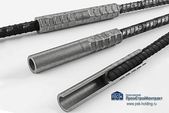 Переходная обжимная муфта PRESKO для соединения арматуры диаметром 25/22 мм. Разработанный ГК ПСК метод механического соединения арматуры (МСА) дает возможность соединять стержни не только одинаковой, но и разной толщины, начиная со стержней Ø 16 и 18 мм и заканчивая диаметром 36 и 40 мм, с использованием переходной обжимной муфты при помощи гидравлического оборудования PRESKO.