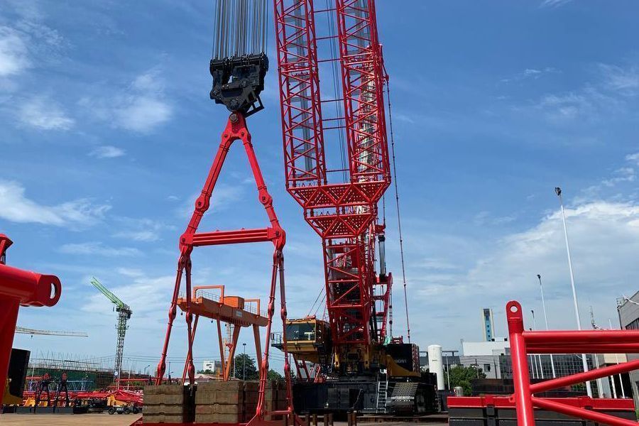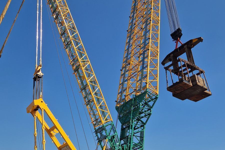Комплектация: стрела - 168 метров; фиксированный гусёк – 18 метров; маневровый гусёк - 108 метров; крюки - 100/400/2000 тонн.